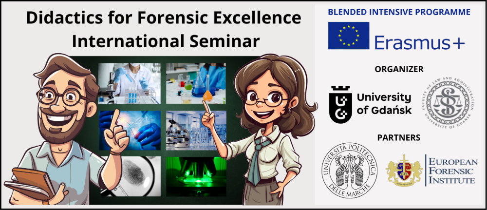 Wydział Prawa i Administracji Uniwersytetu Gdańskiego, Zakład Badań Sądowych, zaprasza studentów Uniwersytetu Gdańskiego zainteresowanych kryminalistyką i naukami sądowymi do udziału w międzynarodowym programie Erasmus+ BIP (Blended Intensive Programme) pt. Didactics for Forensic Excellence: International Seminar.