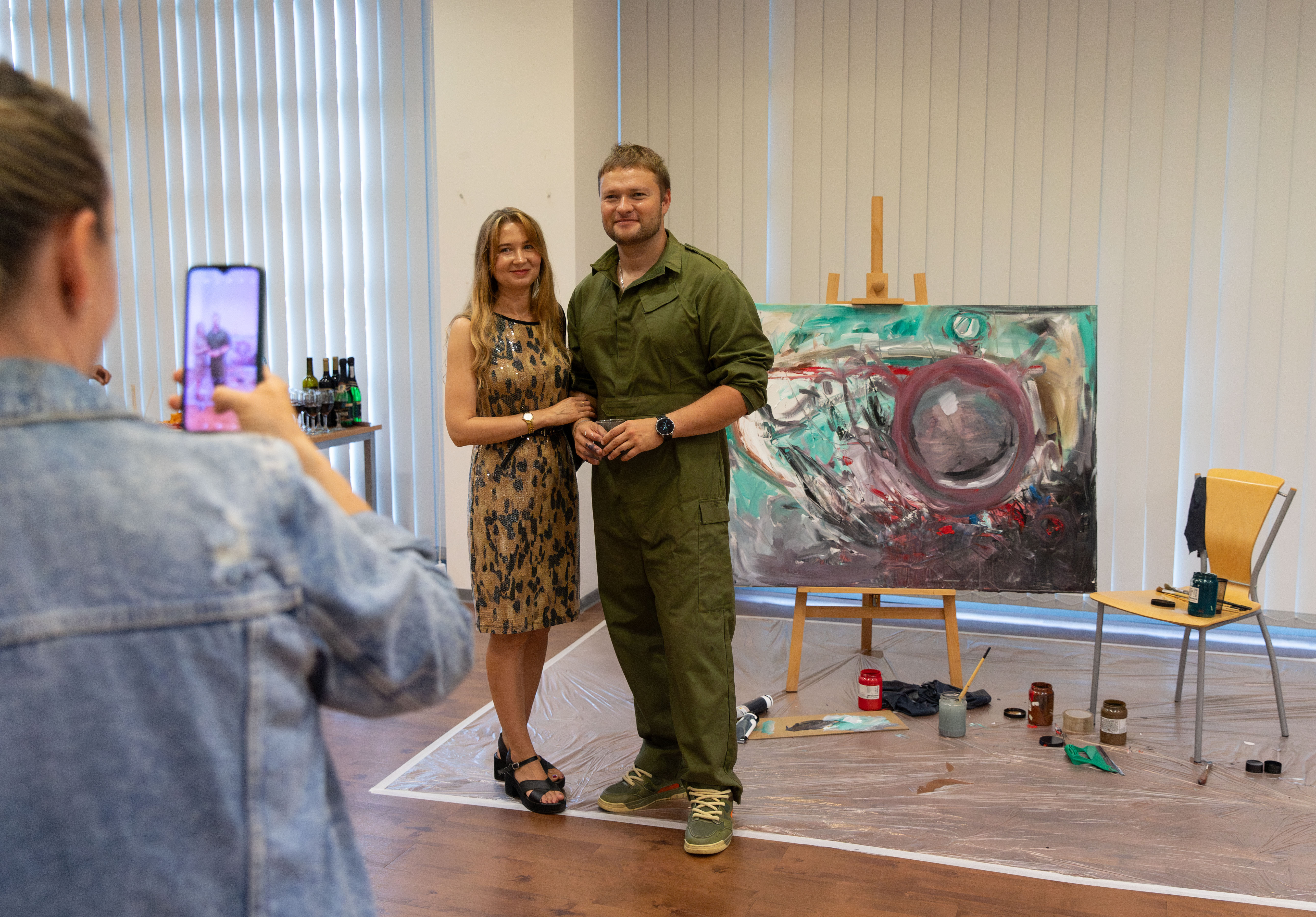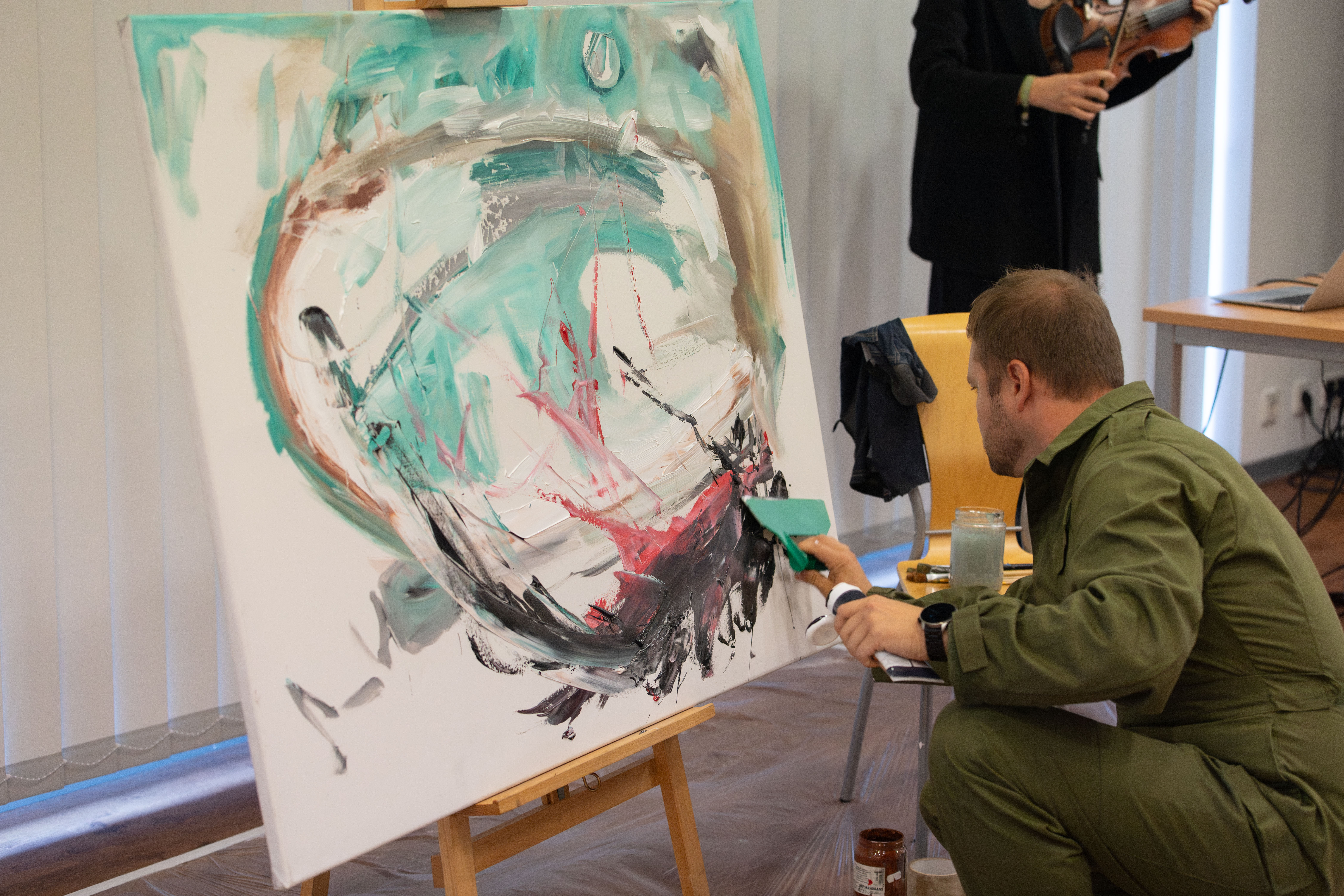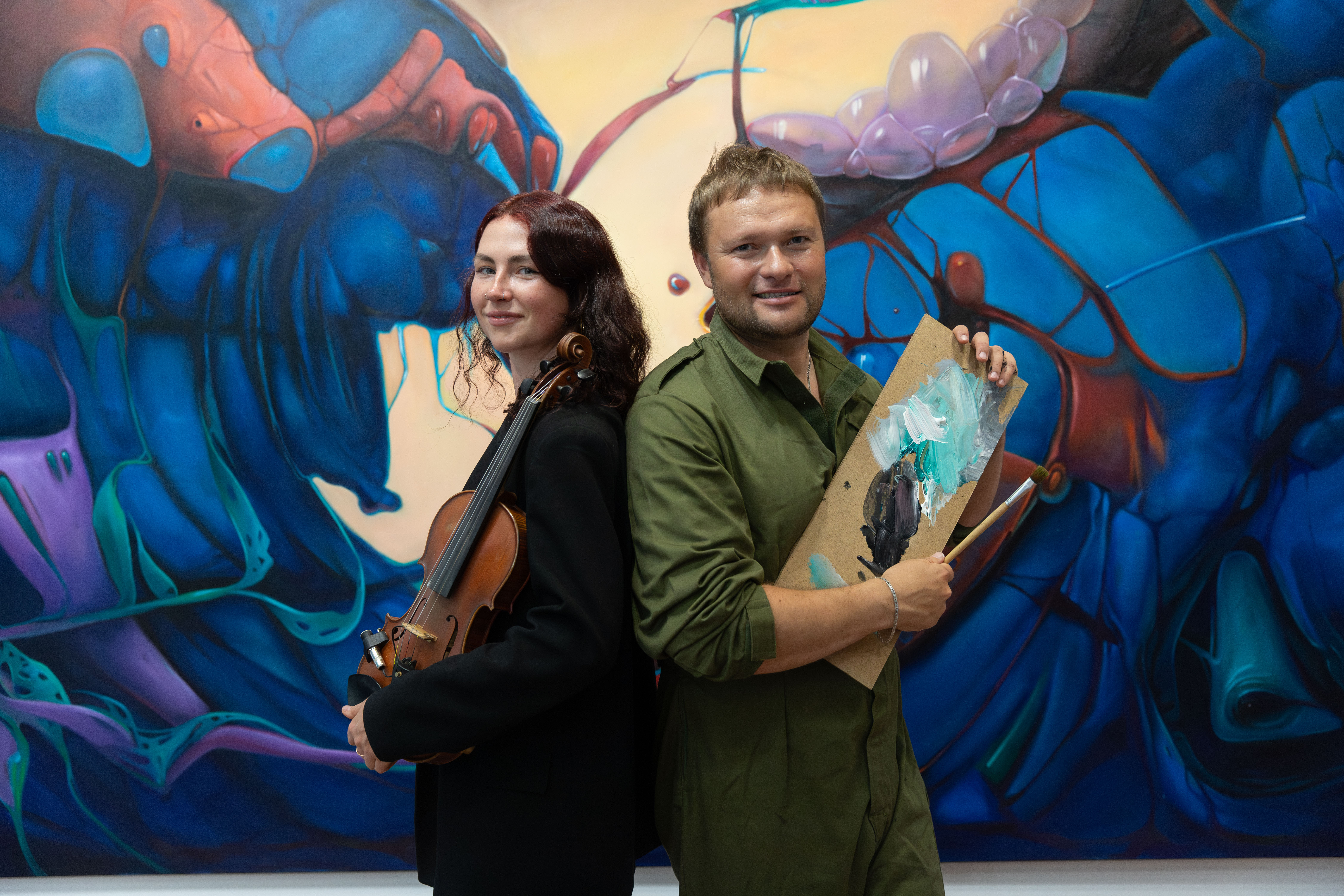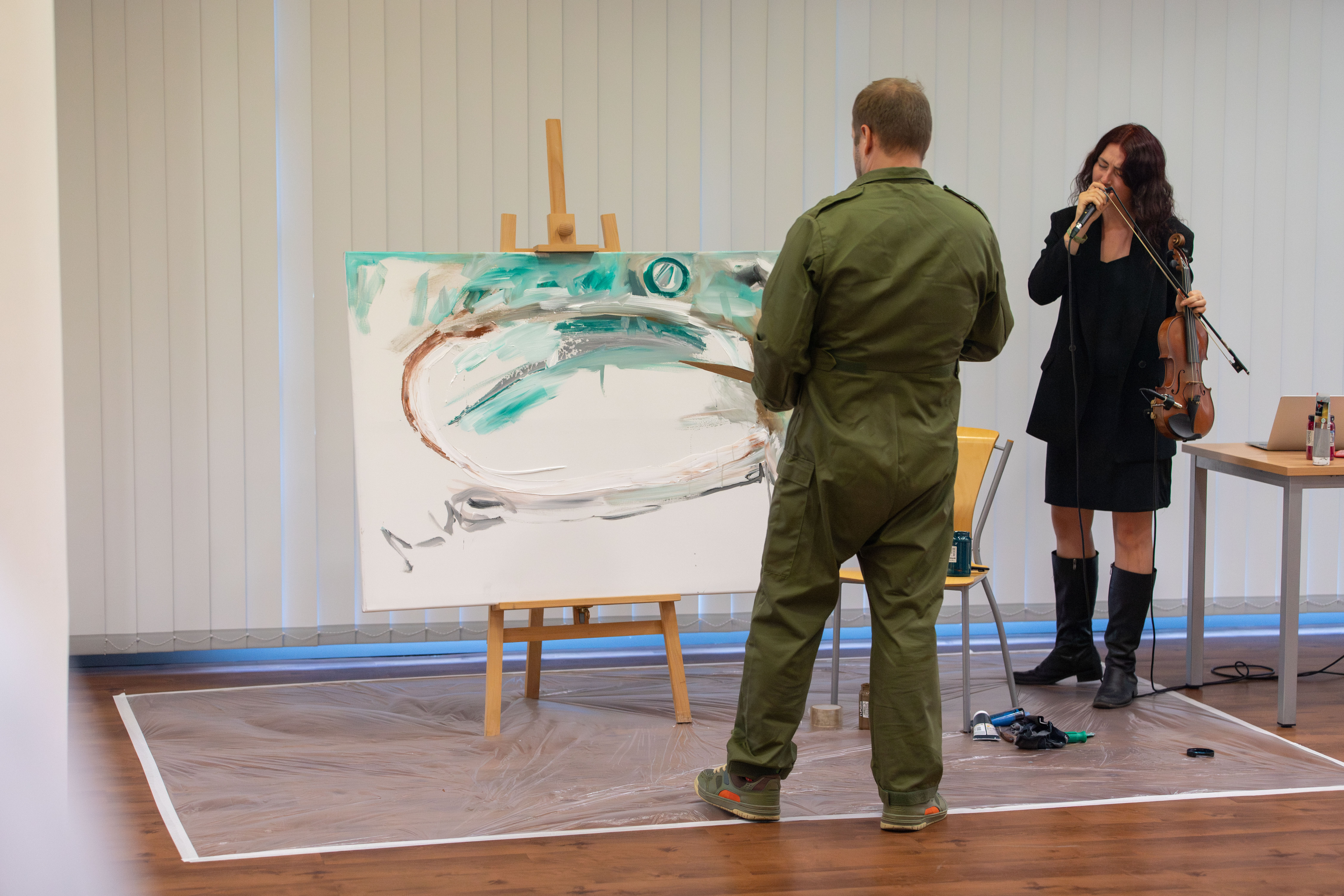 Z początkowym etapem tworzenia dzieła uczestnicy wernisażu mogli się zapoznać na żywo podczas performance’u, podczas którego dwoje artystów: malarz Denis Chyżawski oraz towarzysząca mu skrzypaczka Nadeya jednocześnie tworzyli improwizowane utwory, inspirując się nawzajem swoją sztuką. Jak podkreślili artyści, tego typu improwizację (jednoczesne tworzenie malarstwa i muzyki) wykonywali po raz pierwszy.