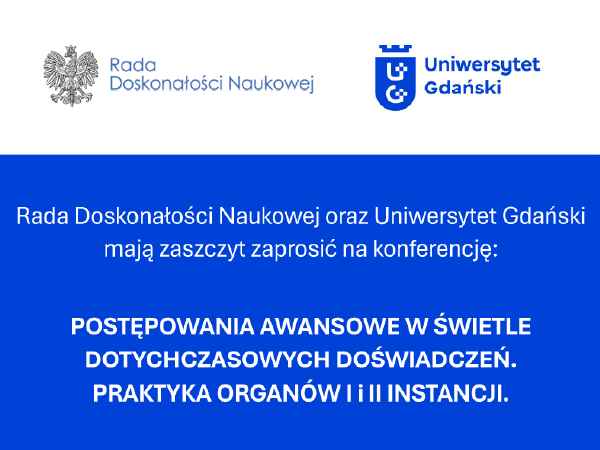 Uniwersytet Gdański i Rada Doskonałości Naukowej zapraszają na konferencję szkoleniową „Postępowania awansowe w świetle dotychczasowych doświadczeń. Praktyka organów I i II instancji”. Wydarzenie odbędzie się 20 października 2025 r.