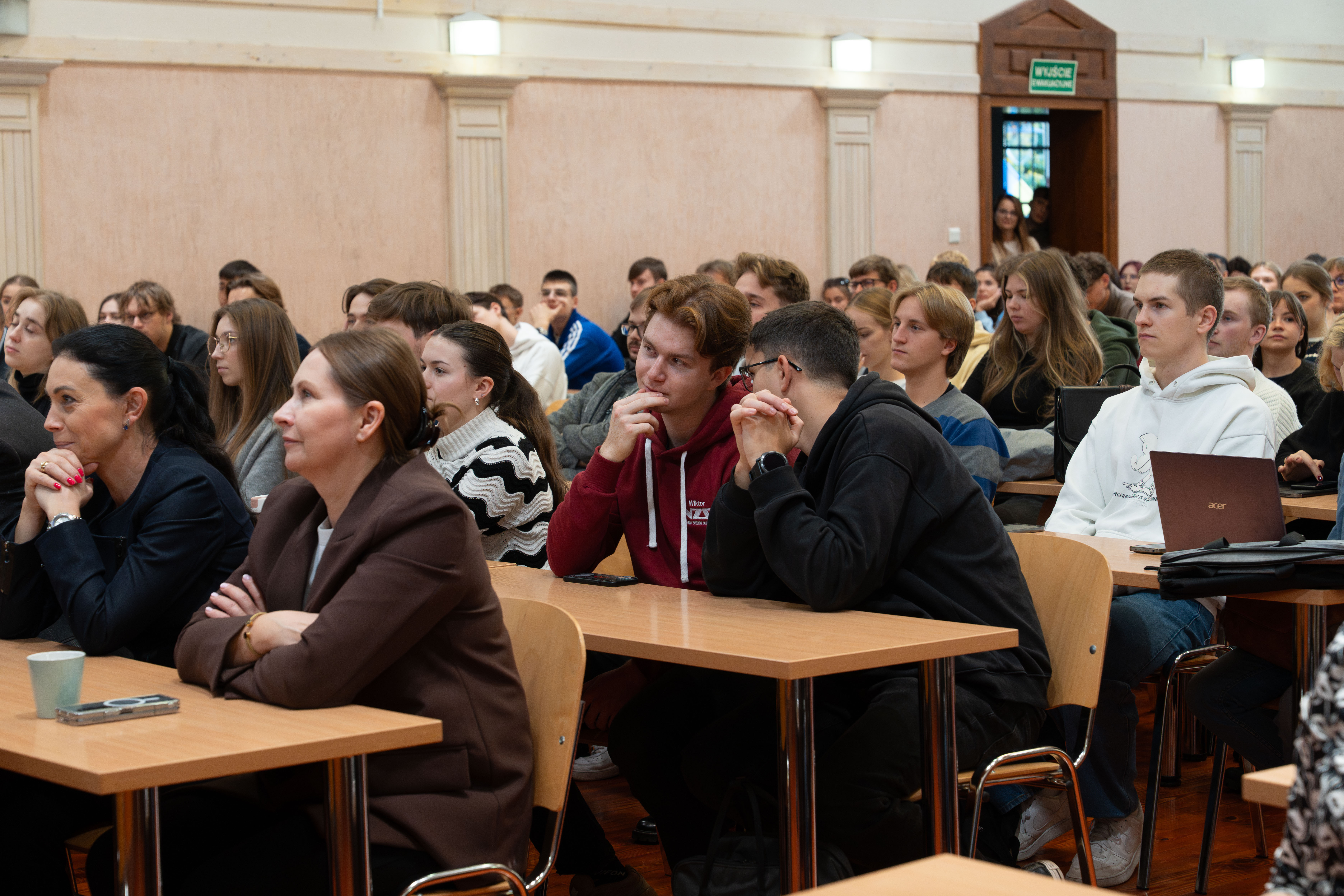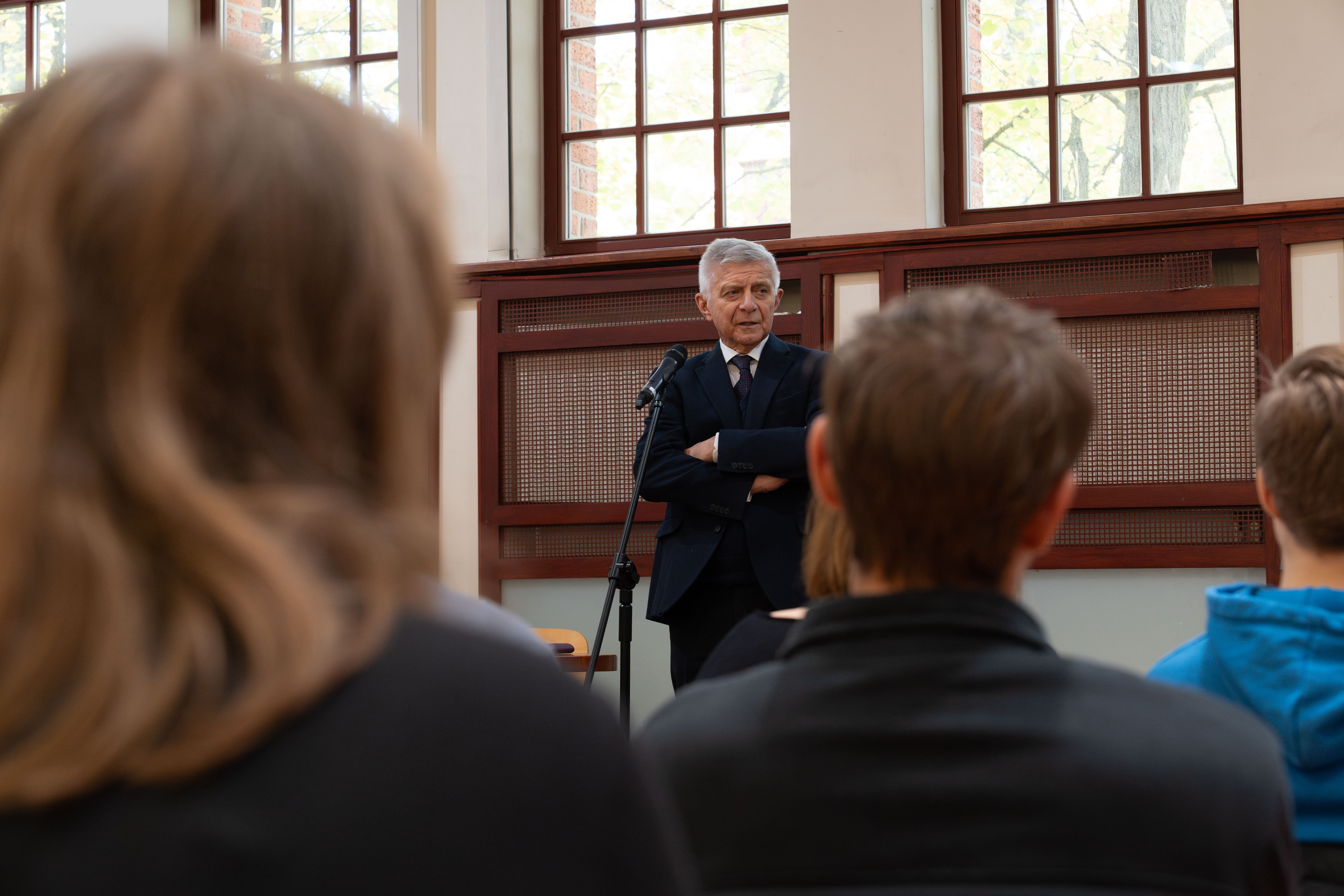 Następnie w wykładzie pt. „Polska, Europa w czasach niepewności” prof. Marek Belka przedstawił wpływ obecnie urzędującego Prezydenta USA na politykę gospodarczą nie tylko Starego Kontynentu, ale całego świata.