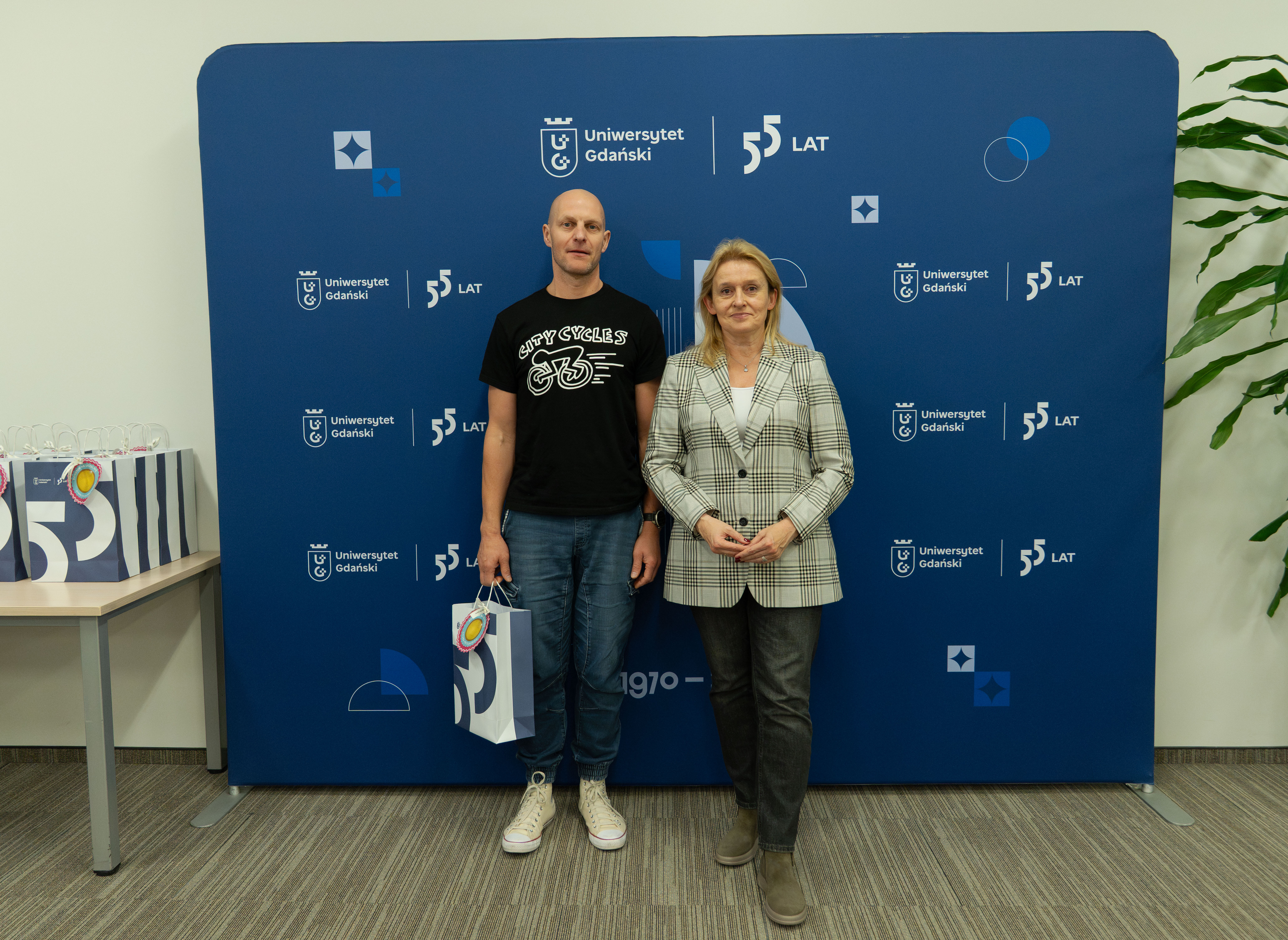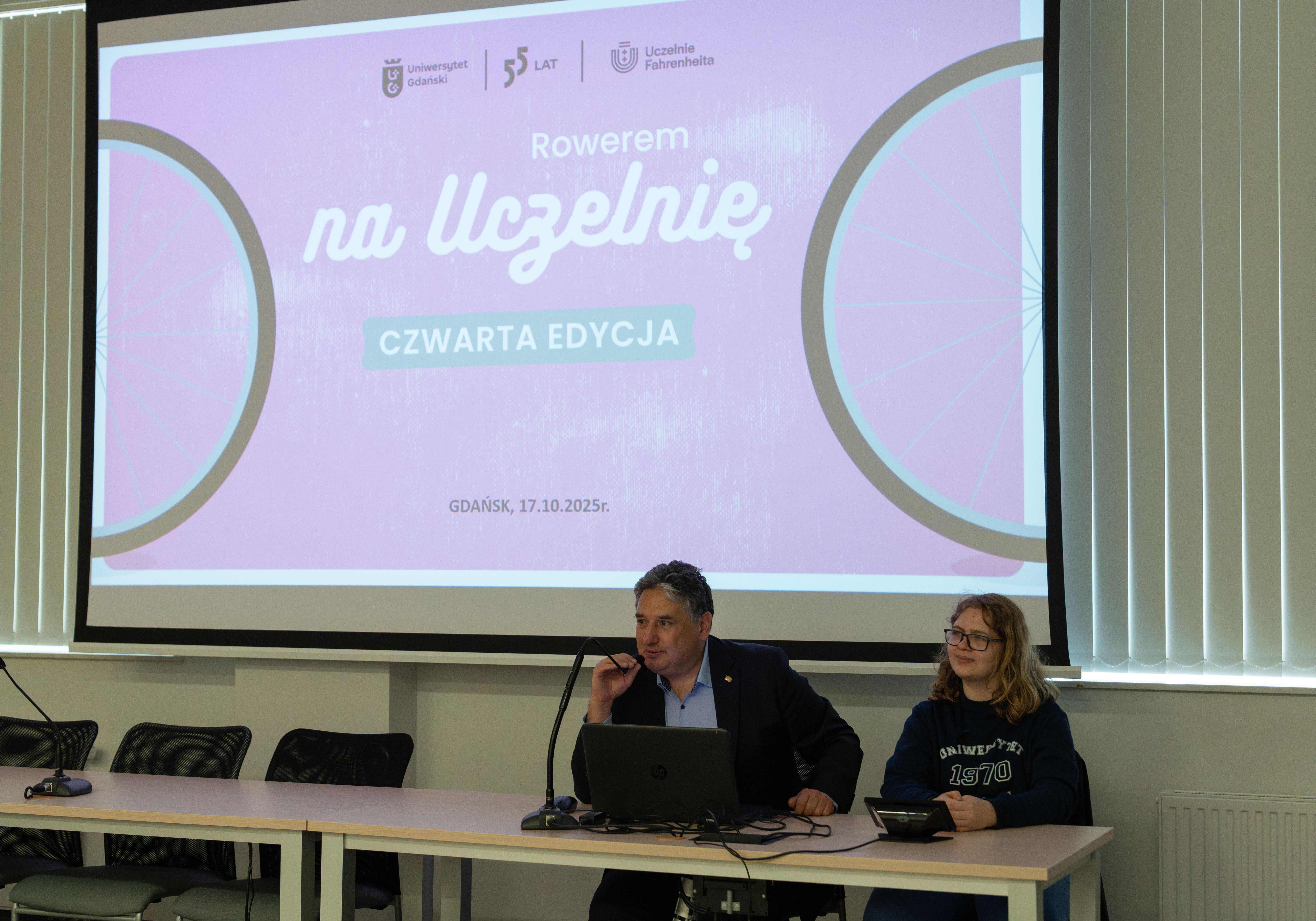 W piątek 17 października 2025 r. odbyło się uroczyste podsumowanie trwającej od początku kwietnia do końca września akcji Rowerem na Uczelnię 2025 oraz wręczenie nagród osobom i (po raz pierwszy w historii konkursu) grupom, które zajestrowały największą liczbę przejazdów z miejsca zamieszkania na Uniwersytet Gdański. W tym roku w konkursie wzięło udział 177 osób (117 pracowników i pracowniczek oraz 60 studentów/studentek i doktorantów/doktorantek), czyli ok. 20% więcej niż w roku ubiegłym. Zarejestrowano 12 467 przejazdów (10 147 pracowniczych oraz 2 320 studenckich/doktoranckich) - o 2 371 więcej niż w poprzedniej edycji! Łącznie pokonany dystans to 84 777 km, czyli ponad 18,5 tysiąca kilometrów więcej niż rok temu.