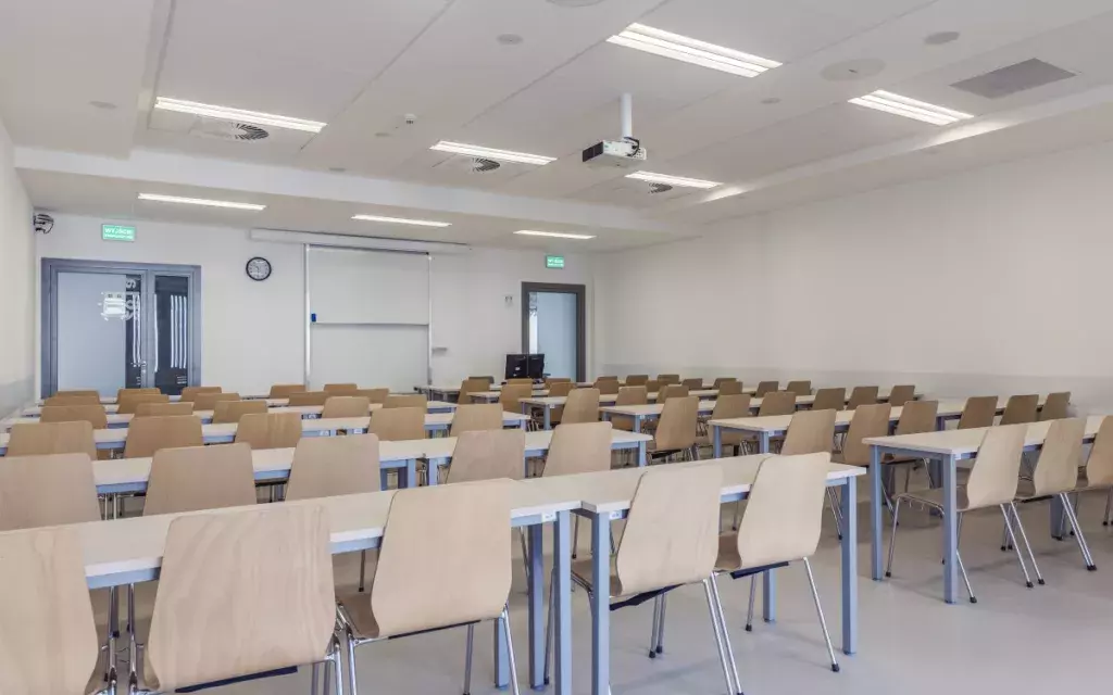 58 różnej wielkości pomieszczeń dydaktycznych. Sale o pojemności: 24 sale do 25 osób, 26 sal do 30 osób, 2 sale do 50 osób, 7 sal do 60 osób; 32 sale są wyposażone w rzutniki multimedialne. Pomieszczenia dedykowane do prowadzenia zajęć, kursów, szkoleń.