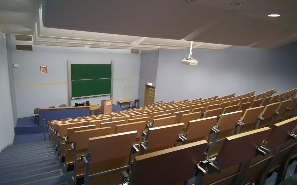 Pomieszczenie o kaskadowym układzie krzeseł, z wejściami z poziomu parteru oraz I piętra, mogące pomieścić 160 osób. Częścią audytorium jest podest z ustawionym na nim niemobilnym stołem oraz mównicą. W skład wyposażenia multimedialnego wchodzi komputer, rzutnik i system nagłośnieniowy. Pomieszczenie jest klimatyzowane.