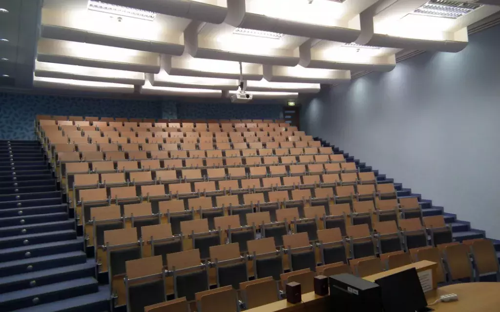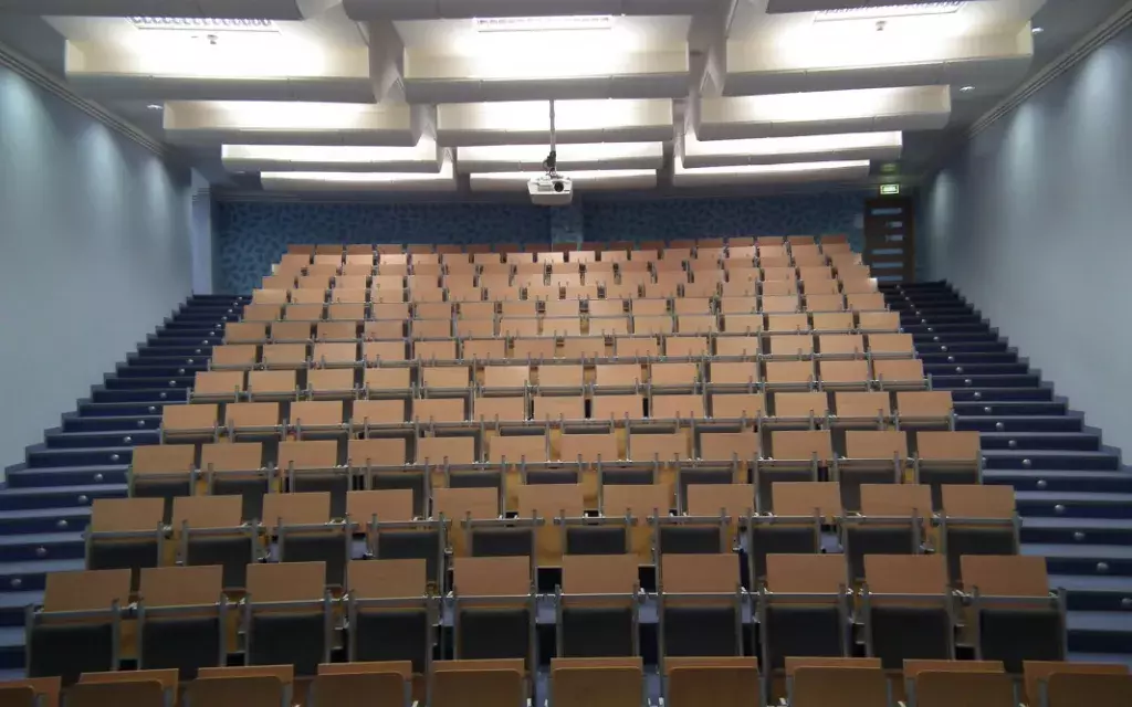 Pomieszczenie o układzie kaskadowym z wejściami z poziomu parteru oraz I piętra, mogące pomieścić do 200 osób. Częścią audytorium jest podest z ustawionym na nim niemobilnym stołem prezydialnym oraz mównicą. Wyposażenie multimedialne to komputer, rzutnik multimedialny i duży ekran projekcyjny. Pomieszczenie jest klimatyzowane.