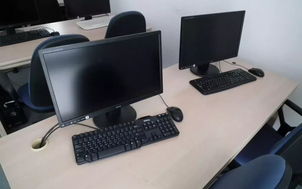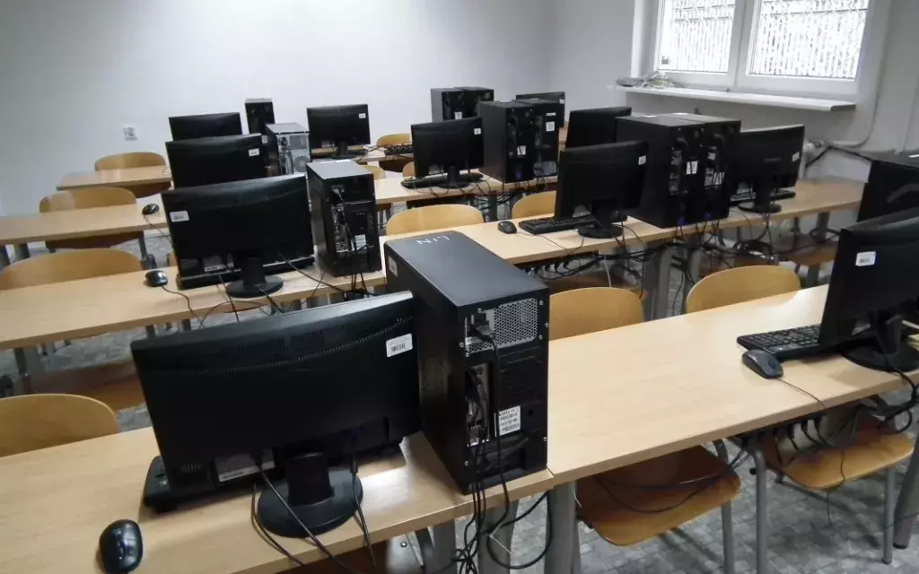 Dwie w pełni wyposażone pracownie komputerowe odpowiednio dla 11 i 12 osób. Pomieszczenia wyposażone w stanowiska komputerowe (komputery stacjonarne lub laptopy) oraz rzutniki multimedialne i ekrany projekcyjne. Rolety w oknach umożliwiają zaciemnienie podczas zajęć.