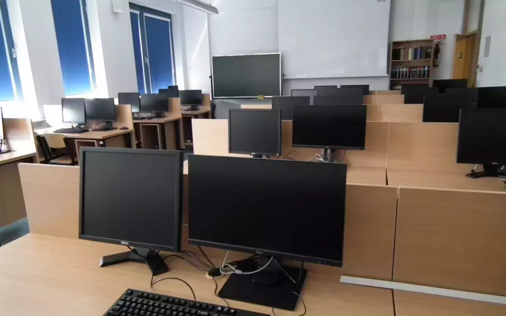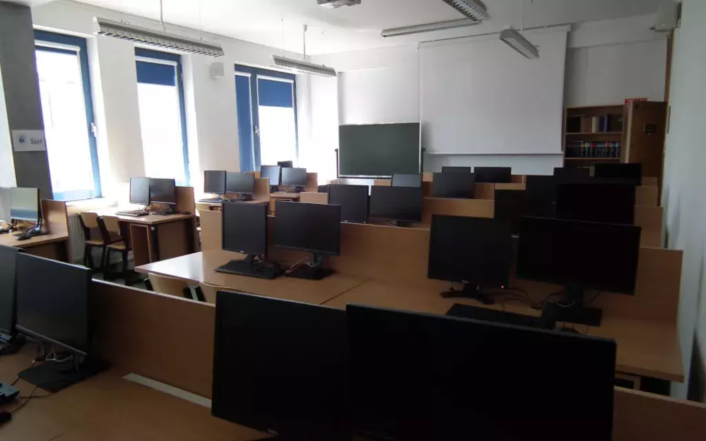 Dwie w pełni wyposażone pracownie komputerowe, odpowiednio dla 22 lub 30 osób. Wyposażone w komputery, rzutnik multimedialny oraz system nagłośnienia. Rolety w oknach dodatkowo umożliwiają zaciemnienie pomieszczeń. Liczba krzeseł w salach dwukrotnie przewyższa liczbę stanowisk.